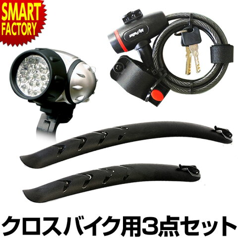 自転車 LED ライト フェンダー 26インチ 27インチ カギ クロスバイク用3点セット 泥除け 21LEDライト 21灯 ワイヤーロック 自転車用アクセサリー スポーツ アウトドア 送料無料 ☆
